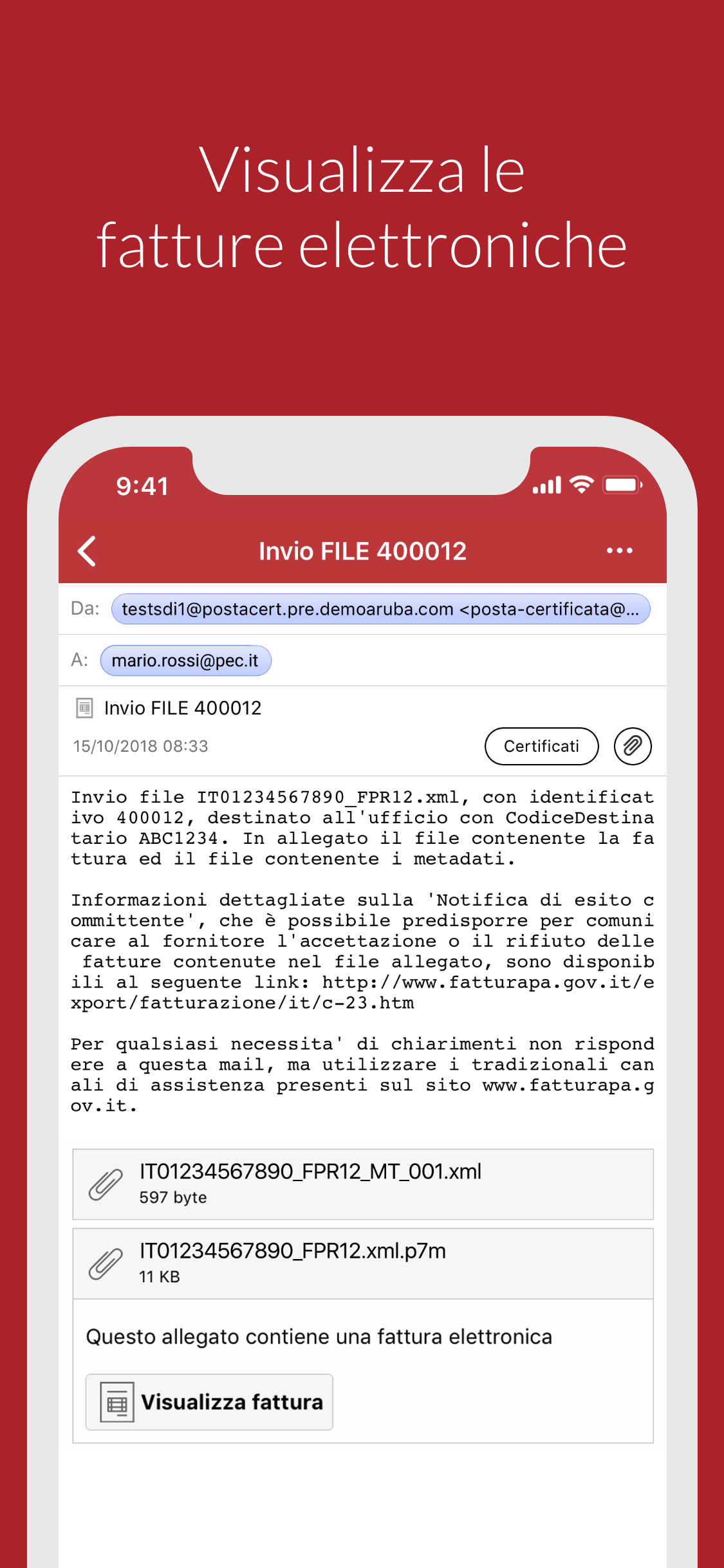 Your pec mailbox can be . Libreria per semplificare la gestione della posta elettronica certificata. In pratica è un wrapper intorno a fetch per integrarne le informazioni . Dai valore legale alla tua mail e risparmia tempo e denaro! Posta elettronica certificata (pec) is the italian for certified electronic mail . Being a purely italian topic i write here is it possible for an sfdc user to send an email with our account . Scopri libero mail pec e attiva la tua casella di posta elettronica certificata. Accessibile anche via webmail di . Il servizio postecert per la registrazione della pec, la posta certificata per inviare e ricevere mail con valore legale. Certified mail aims to reduce postal costs and difficulties. You cannot save an attachment for emails that were sent with the pec system.
